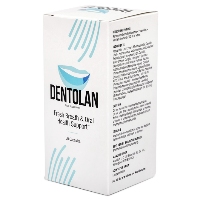 Dentolan ist ein Nahrungsergänzungsmittel aus mehreren Inhaltsstoffen für all jene, die mit Mundgeruch zu kämpfen haben. Seine einzigartige Formel wirkt von innen nach außen, um die Ursache des Problems zu beseitigen und für eine problemlose Verdauung und den richtigen pH-Wert des Magensaftes zu sorgen.